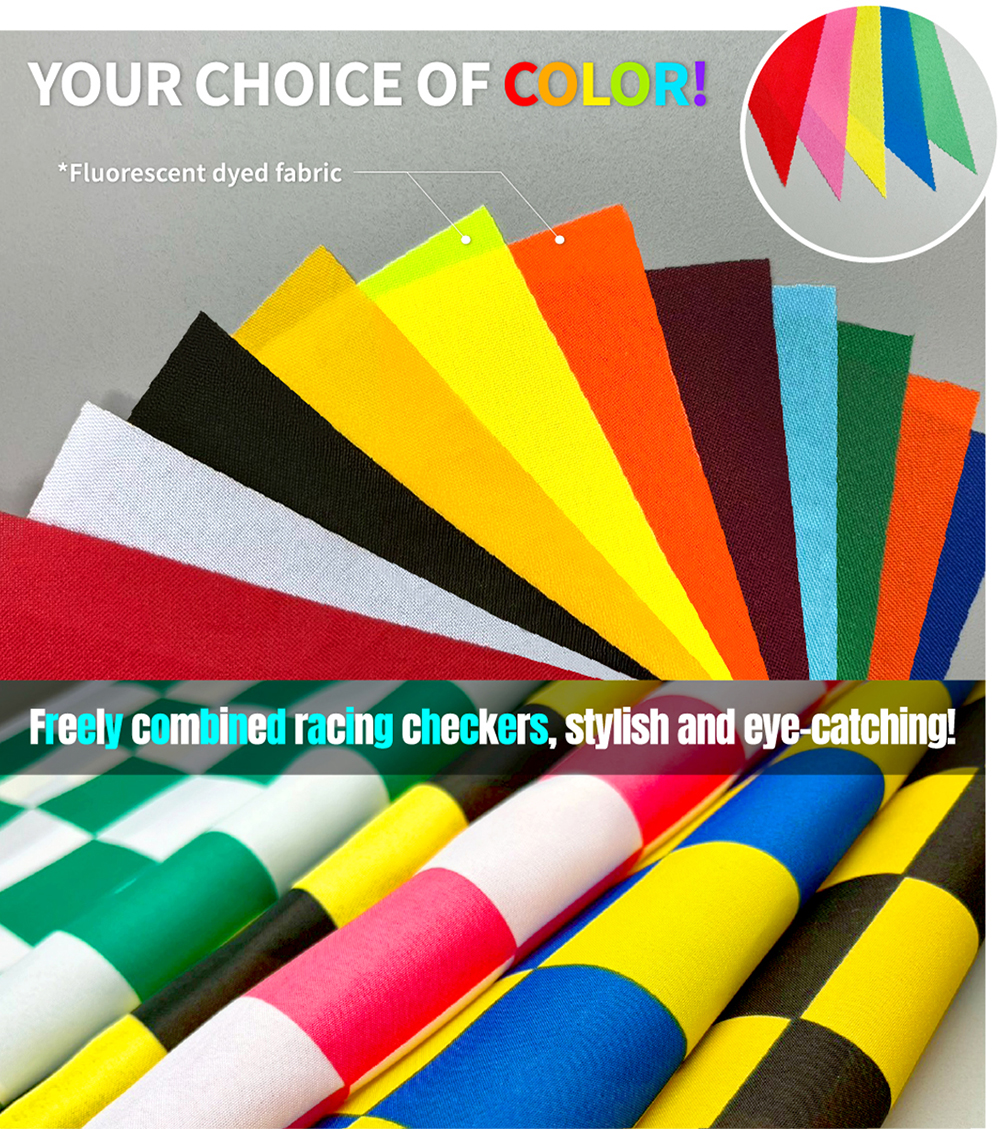 Solid-color flags can be used for decoration, warnings, signs, demarcations, cheering flags, and pride displays—anything you can imagine. Racing grid flags can be used for parties, warnings, demarcations, cheering flags, finish line flags, and more—just hang them up for any occasion.
