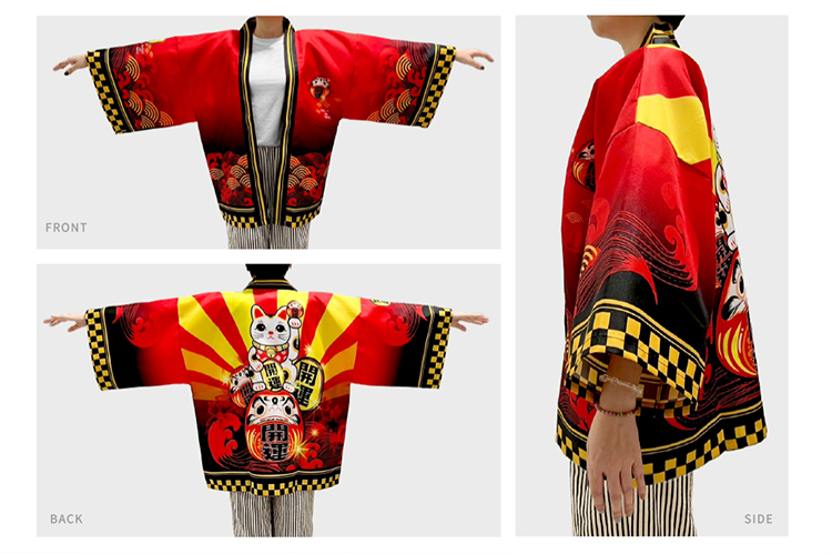 Unisexowy krój z szerokimi nogawkami, obniżonymi ramionami i szerokimi rękawami, odpowiedni zarówno dla mężczyzn, jak i kobiet. Niezależnie od tego, czy chodzi o promocję w centrum handlowym, festiwal w domu towarowym, stoisko w hotelu z gorącymi źródłami, czy wsparcie wydarzenia drużynowego, ten płaszcz będzie w centrum uwagi i stworzy ożywioną atmosferę dla Twojego zespołu. Można go elastycznie wykorzystać na każdą okazję.